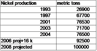 Table 1. Nickel Production 1993-2004 with projections through 2008