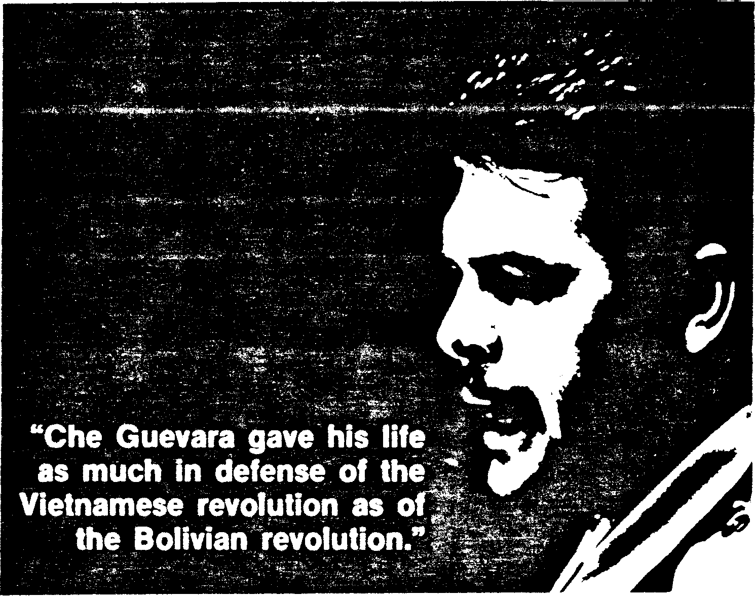 Che Guevara gave his life as much in defense of the Vietnamese revolution as of the Bolivian revolution. And what you accomplished, along with millions more like you who marched and rallied against the war, was to buy time for the Cubans while we fought-successfully-to win over the American people to oppose that war.