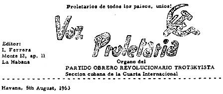 (These documents are by Cuban Trotskyists from 1960-1963. Cover letter