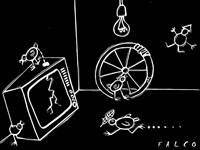 What first comes to mind about that time is a free association of three images (worthy of surrealism): a TV set, four chickens, and many blackouts. My TV set, or should I say, the lack of it –since it was out of order for many months– triggered an irrepressible urge to write. An endless stream of sheets of paper with the adventures I dreamed about took the place of the program Había una vez (Once upon a time) and the cartoons that I liked so much. Blessed by the lack of audiovisual means, my inspiration went so far as to develop drawings for each of those stories, and those illustrations, turned gray or yellow nowadays depending of the paper quality, are still with me, a token of that fleeting but intense pictorial vocation. While I was absorbed in «artistic creation», my parents –bastions of endeavor and optimism– devoted their time after working hours to the «noble» task of breeding chicken. There were four little yellow bodies always rushing around the house, eating our houseplants, crashing into the bicycle spokes –our saving means of transportation– and leaving a trail of dirt in their wake... At night, while my four winged pets slept, we would entertain ourselves by making stories and singing, and if there was no electricity, so much the better –at least to me– since then we could shadow play using the light provided by the oil lamp. Never was the word «problem» so frequently used as in those years: problems with food, medicines, transportation; with clothes, footwear and money; with the heat during blackouts; with the household soap and the ‘steaks’ of grapefruit peel that we made at home; with water, gas and almost everything else in our daily life. However, from a seven-year-old’s perspective, this rough, troublesome and challenging stage gave me the opportunity to create characters of paper, shadows and colors and attend several dance workshops –like with most Cubans, my figure became slender enough to practice that art. And I was happy with my multiple reinventions of a same toy, a same book, a same crayon… the one I used to paint my special period. (Anette Jiménez Marata, Havana) ---ooOoo--- [1] A popular brand of instant soft drink [2] An oatmeal-like food supposedly made of cereal and lactose, still served for breakfast in boarding schools across Cuba (T.N.). [3] In that order: ‘Camello’ (camel), a big truck-like bus very common in the streets of Cuba, popularly known as camels because of their singular shape ; ‘Paladar’, or private restaurant, after a Brazilian soap opera where a leading character opened a catering business known under that name; ‘Botero’ is a private taxi driver who owns and hires an old American car; ‘Jinetera’ is the moniker given to young prostitutes devoted to chase around after foreigners; and ‘Bicitaxi’ is a private tricycle used as a taxi. (T.N.).