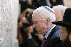 McCain, a la caza del voto judío y de las multimillonarias prebendas del lobby que vive en EE.UU., se ha convertido con esta visita en el primer candidato, en varias décadas, que viaja a Israel en plena campaña electoral.
