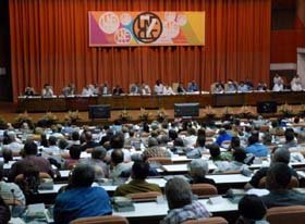 Les decía ayer a los compañeros que tenía una intervención de hora y media; pero no la hice, porque esa intervención de hora y media tenía que ver con algunas intervenciones que el compañero Fidel hizo en el VI Congreso que no fueron publicadas, y, sin embargo, tuve la posibilidad en estos días, antes de este congreso, de repasarlas.