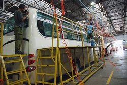 Taking up the repair of all kinds of buses and from all parts, the preparation of workshops for seat and window factories and offer of body work and paint jobs allowed the company to survive and keep with their head above water after the collapse of the USSR during the early 90s.