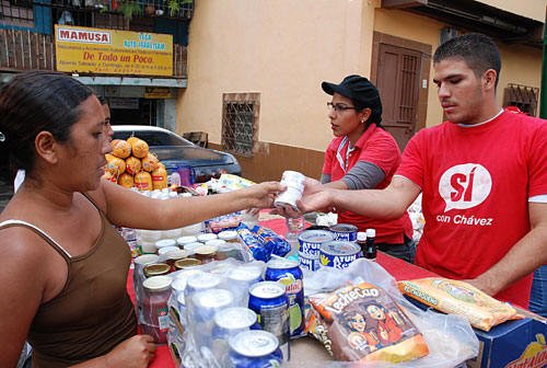 —We always come here, my wife or me; here the prices are much cheaper! — He shares openly with us, without exhibiting any macho embarrassment about it. Pasta, beans, butter, are at prices which are much more affordable than in the commercial chains, where everything is brand name. Nevertheless, here the quality is still good. Carmen says that the greatest demand is for chicken, oil, coffee, sugar and rice. Milk is also in high demand: the package, which elsewhere can cost up to 20 Bolivar’s, here costs barely five. It is a subsidized food, which the State sells to assist those with fewer economic resources. —In an "operational parish"— as it is called, "In one day we serve up to 2,000 people," explains the young woman, who despite her youth, manages the cooperative, which serves four mobile "bodegas" (stores) like this one. It is worth visiting a different locality everyday regardless of how far away it might be. — She says, we start at seven o'clock in the morning, and by noon, there is nothing left. In charge of keeping an accounting of all products sold and other records, Carmen Elena estimates that in one day, their cooperative can sell up to 4,000 tons of food. Last weekend, the Mercal network (Food Markets) reported selling 680,000 tons in 20 states utilizing these operations, a sort of small roving market that moves across the country, providing residents convenient access to basic products, with prices more accessible to their shallower pockets. The program was launched about five years ago, as part of the Bolivarian project’s effort to achieve social justice and whose goal to continue improving remains in tact. Born later, the PDVAL’s3 step on the heels of the 'mercalitos' (corner stores) but there are those like Alexander —a driver who is around 30 years old and, by his appearance, a lover of good eating— who love them because they are always in the same place and open until late. — What you go there to find is always available. All right! The markets were the initiative of one of the PDVSA’s [4], rescued from the hands of the oligarchy, which now use the country’s oil profits to assist the people. The PDVAL’s are governed by the Gaceta, and apply the so-called solidarity prices, and, continue being low priced compared to the "super" [markets]. Anyone would think that the mercalitos and pdvales are more attractive in recent weeks, with the slight increase in prices of a dozen product lines decreed by the Government, while freeing up of others from established price limits previously placed on them — in order to ensure they are not missing from the shelves. But Carmen Elena denies this. — People are still coming in, as always, there is a lot of flow, as usual. Though it is true that here prices have not changed, and remain identical. Zero shortage In a mixed economy, as is the Venezuelan, even though the State is the lead agency involved, private producers also participate, and their earnings were not recouping production costs of certain foods. To continue in that direction would have resulted in a decrease in supply with the added harmful effect of shortages to which the Government has said, “no”. To avoid this from happening, prices were regulated. Also — how to circumvent this! — Weigh external factors that today hang over the whole economy. Anyone could understand the increase decreed in Venezuela for white bread and pasta, among other products made from flour, when we know that the major derivative of wheat has increased its prices worldwide by 152 percent during the past two years. In line with the disparate price of agricultural products, which have increased because of the rising oil prices, and the environmental degradation, which join hands to make us all victims of today’s impoverishing food crisis. Thus, white bread along with pasta and oils are some of the products which here recorded slight increases, which were agreed to after meetings of various state agencies with the private sector. However, large industrial bakeries are not acting in line with a measure passed by the State in order for them to receive their corresponding production costs, which was a stimulus agreed to in order to encourage them to maintain products on the market. Last Friday, leaders of the National Bolivarian Federation of Flour accused the commercial bread businesses of lowering the quality of their "canillas," which is what our “pound” or loaves of bread are called, - and intentionally promoting a bread shortage at shop counters during peak hours, which they believe is an alleged attempt to further destabilize the country. Their antics should not be a surprise, as they are the same superrich of FEDECAMARAS [5] and the same Entrepreneurs and Industrialists Federation, which in 2002 was headed by the failed de facto president and coup leader, Pedro Carmona Estanga. Apart from that, the reported incendiary desire of that group is in tune with the apparent intent of the reactionary political opposition – to create chaos in the face of the upcoming regional elections in November. Producing more here Beyond platforms and measures to ensure food security - that is, citizens' access to food -, the final measure for the Bolivarian government to follow in this, and in other areas, is to provide Venezuela with the capacity to produce its own, which will allow it to be free from depending on imports. The task may not be easy for a country, which states that it still purchases approximately 80 percent of what people eat and that Venezuela, when the Bolivarian Revolution’s came to power, still had much of its land in the hands of unproductive estates — against whom it still struggles. Five of the decrees promulgated this month, according to the powers that gave the executive branch the Enabling Act, related to agriculture, who will unobjectionably make its first beneficiaries the bulk of society, leading to a leveling off of profits for the rich, abus
