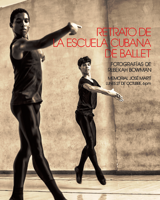 Exposición fotográfica Retrato de la Escuela Cubana de Ballet, desde el lunes 27 de octubre en el Memorial José Martí. ![]() Bajo la curaduría de Roberto Chile y la propia Rebekah, se exhibirán más de una veintena de imágenes de mediano y gran formato, que apresan con aguda pupila, múltiples aspectos del ritual cotidiano de clases y ensayos en la Escuela Nacional de Ballet. Al decir del Doctor Miguel Cabrera, Historiador del Ballet Nacional de Cuba, "esta exposición, que recibimos agradecidos, además de constituir valioso testimonio, es tributo a la rica herencia de la institución, y muestrario de la inagotable levadura que habrá de nutrir el futuro del ballet cubano". |