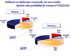 Al procesar los resultados se encontró que la tercera parte de toda la muestra afirmaba no usar el condón con regularidad en parejas ocasionales, y el 18 por ciento, nunca. La cifra de quienes sí lo usan aumentó cinco puntos porcentuales desde el 43 obtenido en el 2001 a 48 en el pasado año.