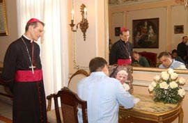 Wearing dark suits, Fidel and Raúl arrived at the seat, located in Miramar, shortly before 5:00 p.m. accompanied by Felipe Pérez Roque, foreign minister, Carlos Valenciaga, member of the Council of State and Caridad Diego, head of the Religious Affairs Office of the Communist Party. There, they were received by Monsignor Luigi Bonazzi, papal nuncio in our country.